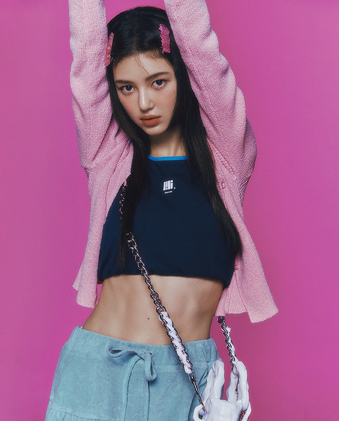 바비가 연상되는 옷, 액세서리, 신발 등을 활용한 룩.
